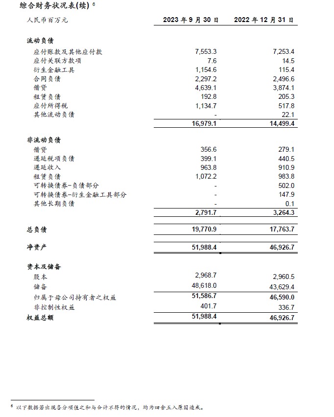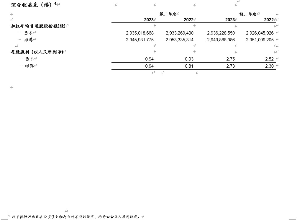 [1] 2022年1-9月和2023年1-9月,公司稀释加权平均普通股股份数分别为2,951,099,205股和2,949,888,986股。